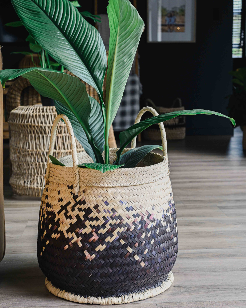 Handwoven from ilala palm, this ombre beauty works just as hard as it looks good. Pop in a leafy green plant and watch the black base make that green pop 🌿